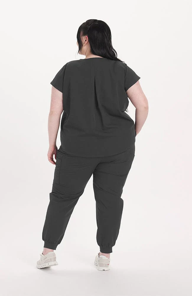 Slim fit not your feel? We made your new favorite scrub top. This oversized easy-to-move-in top has a rounded hem that hits above the hips. Tuck it in. Leave it loose. Wear it your way!Â