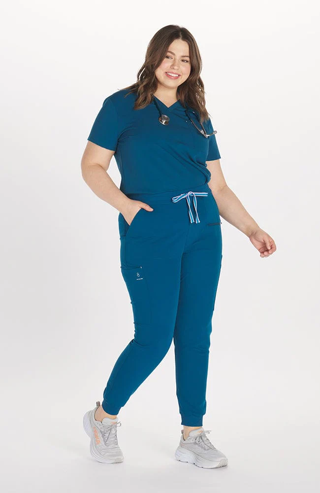 Perfect for: Healthcare professionals who need maximum pocket space and prefer a modern jogger silhouette. Note: Jogger style features tapered legs and ankle cuffs. Inseam is shorter than traditional scrub pants for the jogger aesthetic.